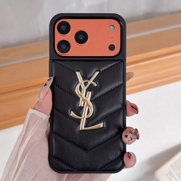Marca De Moda Em Relevo Etiqueta Dourada Capa 3D De Couro De Luxo Para iPhone 17/16/15/14/13 Pro Max