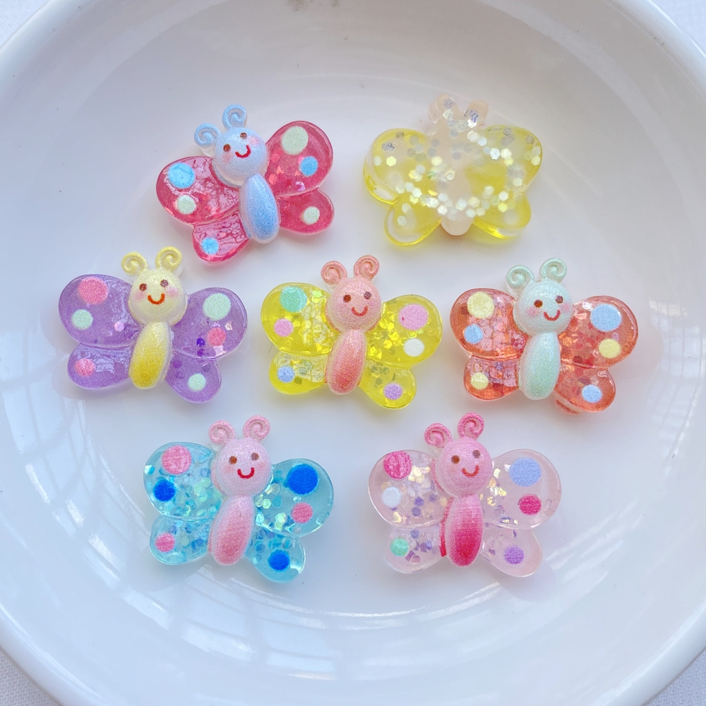 Marca Nova 10 Peças / Batch Cute Cartoon Série Borboleta Colorida Brilhante Resina Artesanato de Estátua Flat Back Convex Round