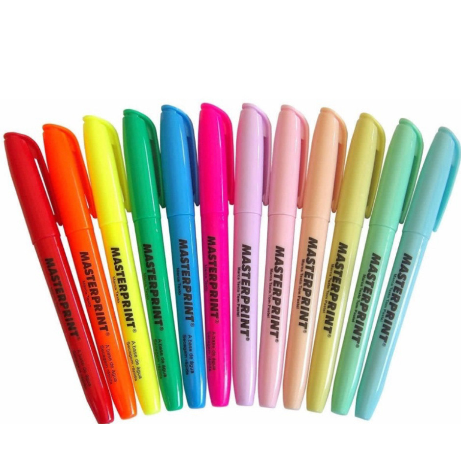 Marca Texto Masterprint 6 ou 12 Cores – Neon e Pastel Kit Completo