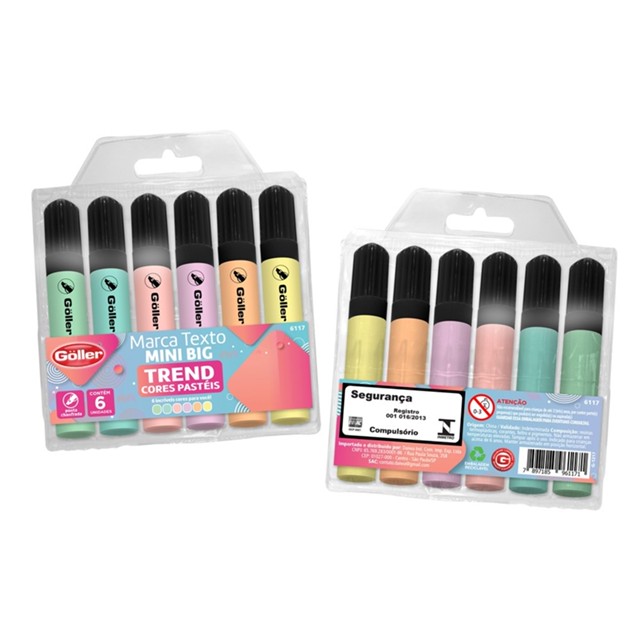 | Marca Texto Mini Trend Com 6 Unidades Ponta Chanfrada Göller este produto | R$ 14,99 | — | 4.8/5 | 11 |