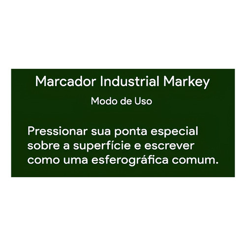 Marcador Amarelo Para Metais Esferográfico 3mm MARKEY DESCRIÇÃO DO PRODUTO O Marcador Para Metais Esferográfico 3mm Markey é a escolha ideal para quem busca precisão, durabilidade e resistência em marcações profissionais. Desenvolvido para superfícies metálicas, oferece desempenho superior mesmo em ambientes desafiadores. Sua aplicação é simples, com escrita fluida como uma caneta esferográfica comum, mas com muito mais aderência e resistência. DESCRIÇÃO TÉCNICA DO PRODUTO -Marca: Markey; -Tipo: Caneta marcadora para metais; -Espessura da ponta: 3 mm; -Tipo de ponta: Esferográfica; -Cor da tinta: Amarelo; -Secagem rápida; -Alta aderência; -Resistente a sol, chuva e altas temperaturas; -Tinta que não racha, não descasca e não desbota. COMO USAR Pressione a ponta da caneta contra a superfície metálica desejada até que a tinta comece a fluir. Em seguida, escreva normalmente como faria com uma caneta esferográfica comum. Após o uso, tampe bem para preservar a qualidade da tinta. APLICAÇÕES: - Ideal para marcação de: - Superfícies metálicas; - Ferragens; - Equipamentos industriais; - Estruturas metálicas expostas ao tempo; - Peças automotivas ou mecânicas. POR QUE COMPRAR? - Escrita precisa e prática como uma caneta comum; - Excelente aderência em metais; - Tinta de secagem rápida e alta durabilidade; - Resiste às condições climáticas e ao calor; - Não desbota, não descasca e não racha; - Produto confiável para uso profissional e industrial. Dúvidas frequentes: O Produto é novo? Sim. Nós trabalhamos apenas com produtos novos e com garantia. O Produto é original? O produto é 100% Novo e Original com Nota Fiscal! Em quanto tempo recebo minha compra? Seus produtos serão enviados no mesmo dia após a confirmação do pagamento. (Exceto sábado, domingo e feriados) Possuem loja física? Nós somos a Pinho Diesel e Ferramentas, localizada no CADEG no Rio de Janeiro. Nos acompanhe nas redes sociais ou entre em contato com um de nossos vendedores. Tem alguma dúvida sobre o produto ou sobre a compra? Deixe sua pergunta abaixo, que responderemos prontamente.