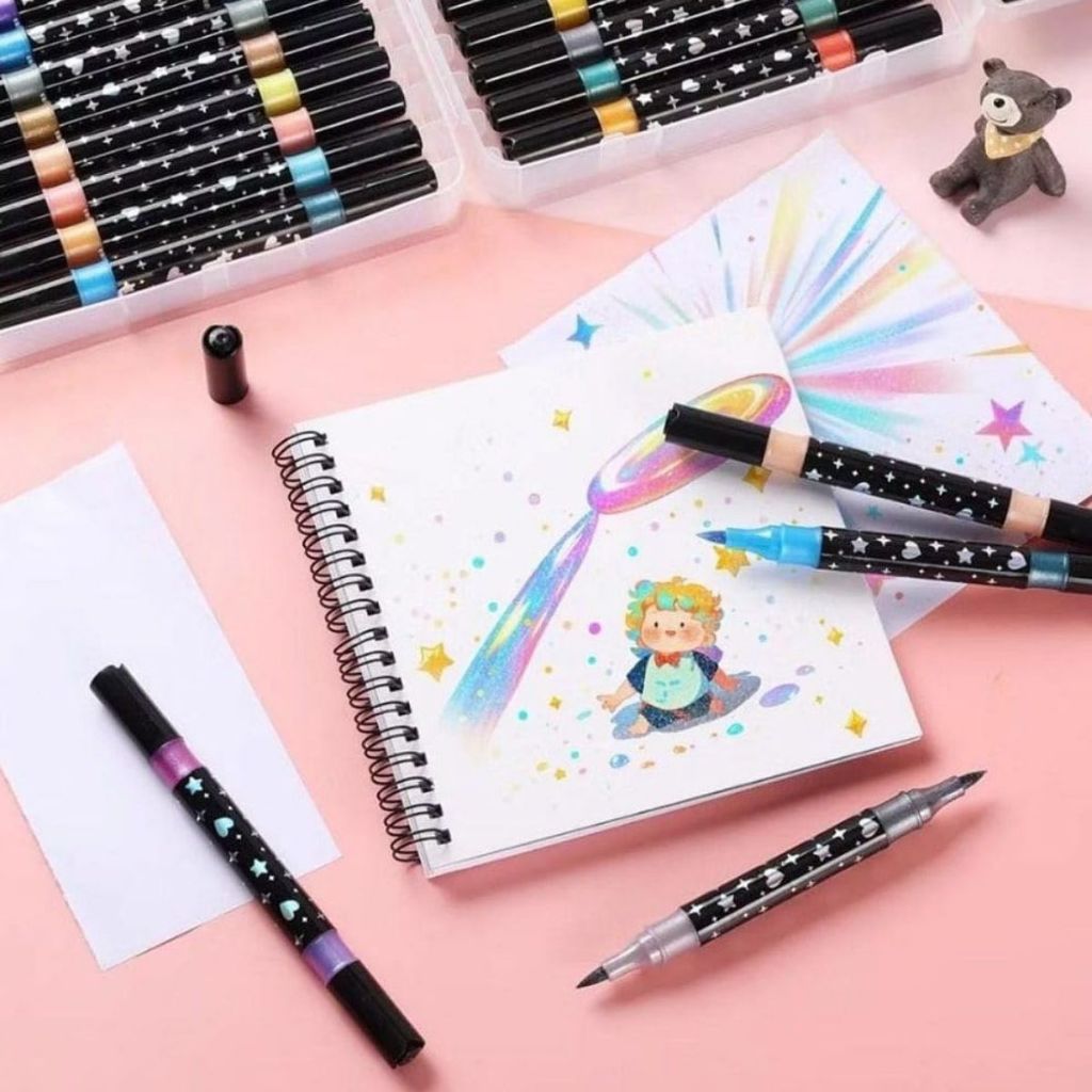 Apresentamos o marcador metálico de ponta dupla com glitter da nossa marca-texto, disponível em 24, 48, 72 ou 96 cores vibrantes para dar um toque especial aos seus projetos de arte e escrita. Este marcador possui uma ponta fina e uma ponta grossa, ambas com glitter brilhante que adiciona um efeito flash às suas criações. Com a caneta marcadora flash de ponta dupla, você pode facilmente realçar textos, desenhos e detalhes com precisão e estilo. As cores metálicas e brilhantes são perfeitas para destacar informações importantes em documentos, fazer lettering em cartões e convites, decorar agendas e planners, e muito mais. Além disso, a tinta de alta qualidade é resistente à água e não desbota, garantindo que suas criações permaneçam vibrantes e bonitas por muito tempo. O design ergonômico e a tampa de segurança garantem que o marcador seja fácil de usar e armazenar, tornando-o ideal para artistas, estudantes, profissionais e entusiastas de papelaria. Adquira agora o marcador metálico de ponta dupla com glitter da nossa marca-texto e adicione um toque de brilho e elegância aos seus projetos criativos!
