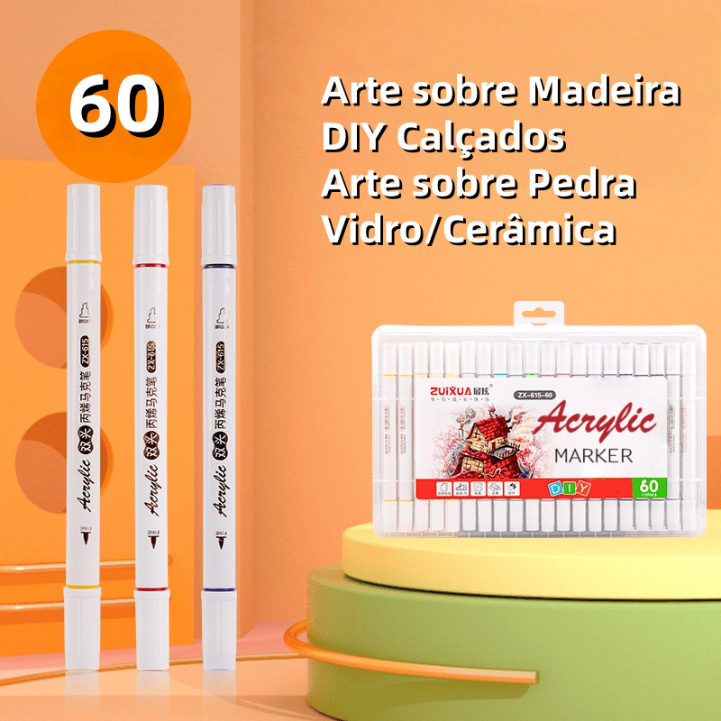 Caneta Acrílica Double Ended (fina e dupla ponta com cores diferentes) A Caneta Acrílica Double Ended foi desenvolvida para quem busca qualidade, praticidade e criatividade em um só produto. Com cores vibrantes e dupla ponta (fina e média), oferece versatilidade para diferentes usos, desde desenhos detalhados até preenchimentos maiores. Ideal para artistas, estudantes, professores, artesãos e amantes do DIY. Tipo: Caneta acrílica Aplicação: papel, madeira, tecido, cerâmica, vidro, plástico, metal e outras superfícies lisas Pontas: Dupla ponta (fina e dupla ponta com cores diferentes) TWIN MARKER ( dupla ponta-fina e broad ;dupla ponta com mesmo Cor) Design de Ponta Dupla: Cada marcador à base de álcool tem um design de ponta dupla com uma ponta fina (1-2 mm) para detalhes precisos e uma ponta chanfrada larga (1-6 mm) para colorir rapidamente áreas grandes. Tinta de Alta Qualidade à Base de Álcool: As tintas à base de álcool usadas nesses marcadores são seguras para usuários de todas as idades, iniciantes e profissionais. Altamente pigmentadas, proporcionam cores vivas e brilhantes, são permanentes e secam instantaneamente. Mistura Sem Emendas: Diga adeus às manchas desagradáveis e cores desiguais. Nossas tintas de alta qualidade se misturam perfeitamente, criando belas obras de arte de nível profissional, perfeitas tanto para iniciantes quanto para artistas experientes; além disso, sem borrões frustrantes ou tinta úmida estragando seu trabalho. Nossas tintas à base de álcool secam rapidamente, garantindo que sua arte esteja sempre limpa, livre de manchas e pronta para ser exibida. Fácil de Reconhecer, Organizar e Portátil: Não perca tempo procurando a cor perfeita. Nossos marcadores vêm com tampas codificadas por cores para mantê-lo organizado e produtivo. O Presente Perfeito: Os marcadores à base de álcool Colourcolor são o presente perfeito para o Natal, Ação de Graças ou para crianças escolares. Eles vêm em um lindo conjunto ecológico que é perfeito para viagens e armazenamento dos marcadores. Quer você seja um iniciante ou um profissional, esses marcadores à base de álcool são indispensáveis em qualquer kit de artista.