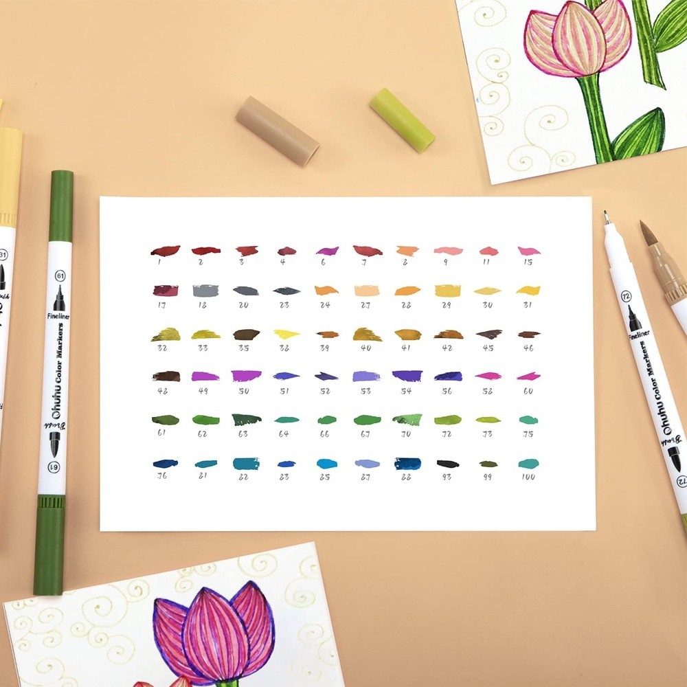 Marcadores Canetas Artísticas Ohuhu 60 Cores Ponta Dupla