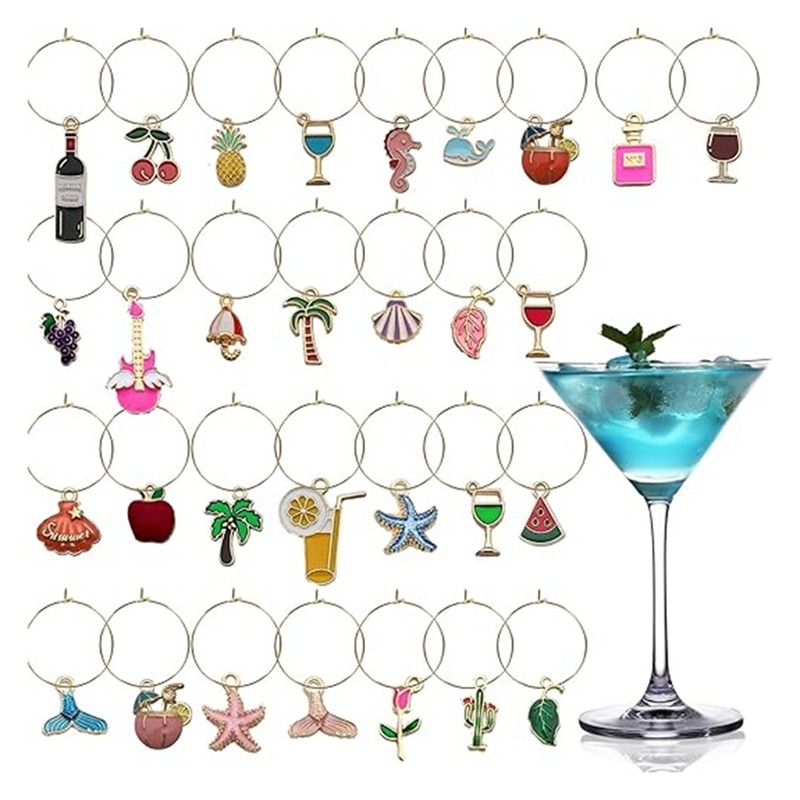 Marcadores De Vidro De Vinho 30 Peças-Identificadores De Bebidas De Amuletos Para Copos De Haste Etiquetas Fontes De Fes