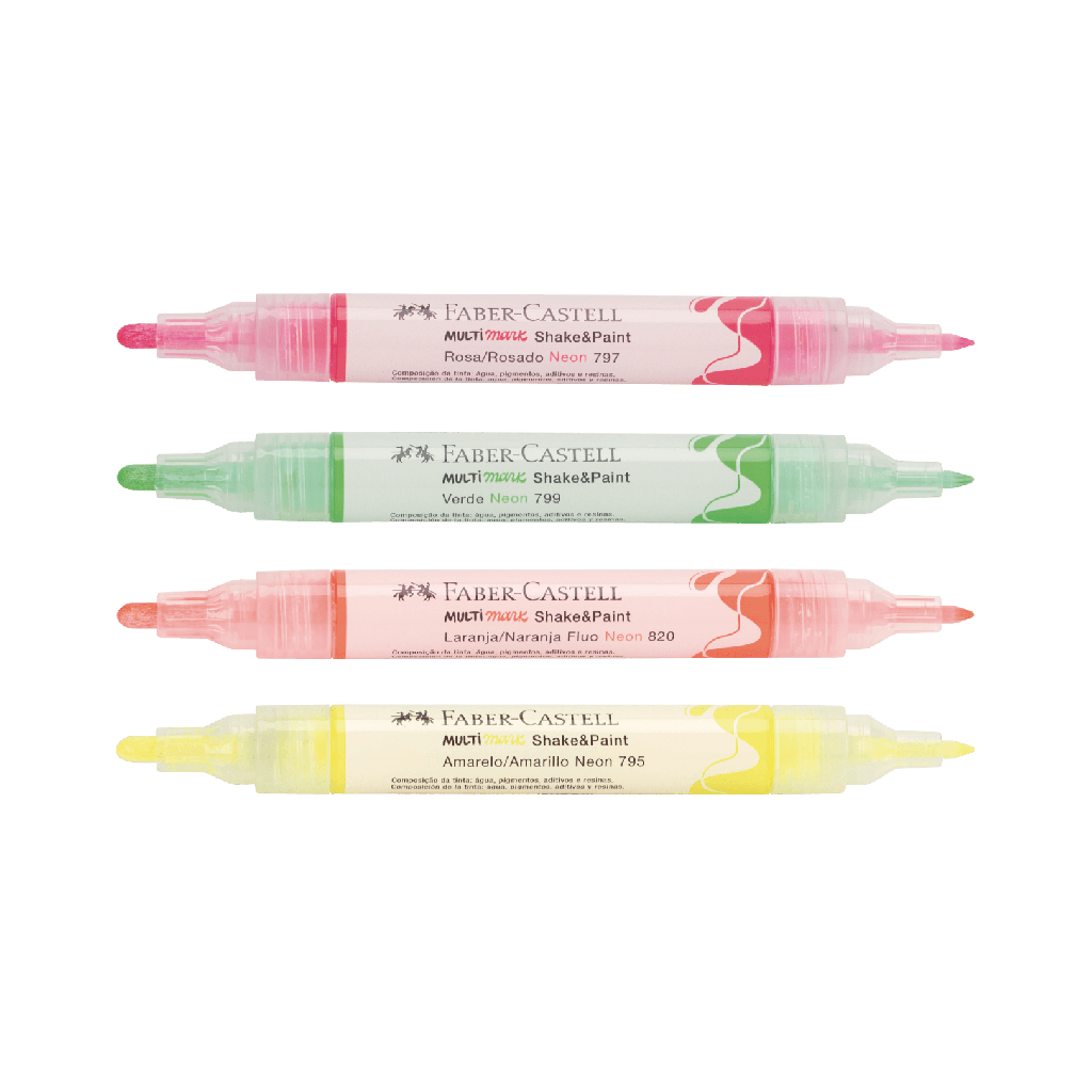 Marcadores MultiMark Multisuperfície Faber-Castell 4 Cores Neon - MM/ES4NSP
