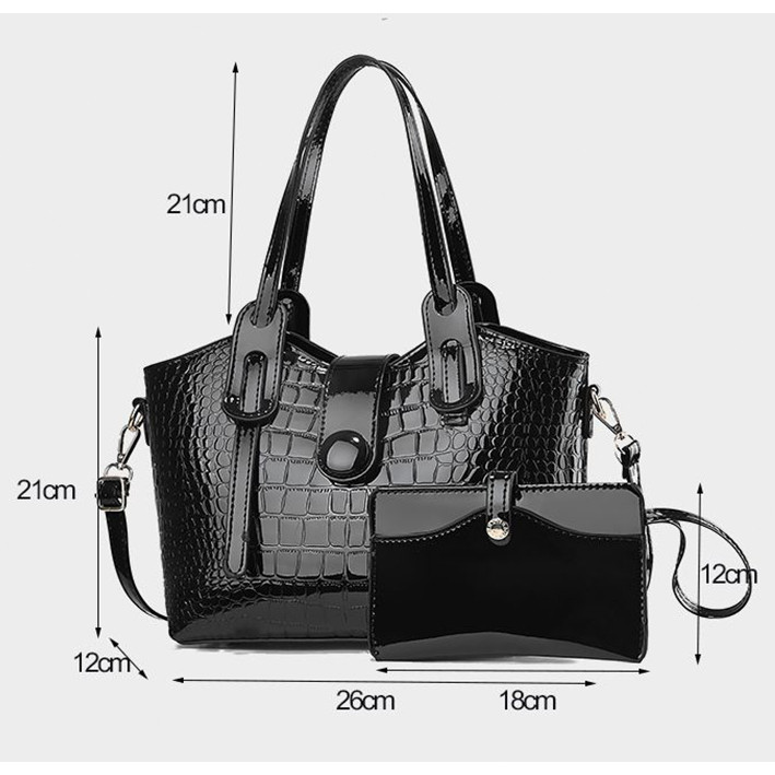 Marissa Bolsa Tote em Couro Brilhante com Alça de Mão + Bolsa Adicional - Bolsa de Ombro/Transversal