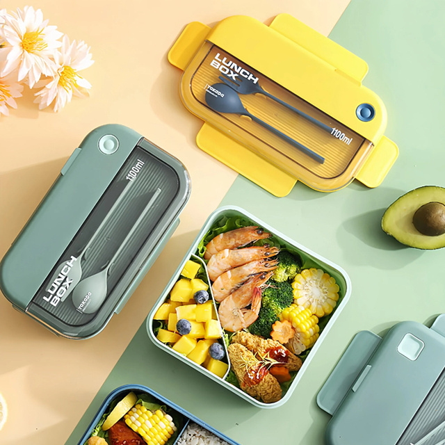 Marmita 1100ml Anti-vazamento externo + talheres inclusos com armazenamento Apto para micro-ondasv