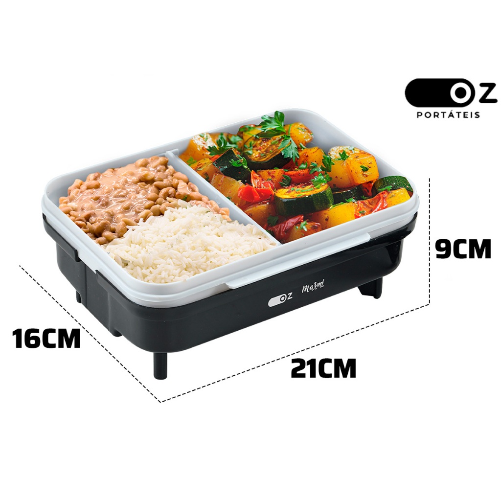 Distribuído por Ismafer Ferramentas MARMITEIRA ELÉTRICA AQUECEDOR DE ALIMENTOS OZ PORTÁTEIS MR1900 A Marmiteira Elétrica Oz MR1900 é a solução ideal para quem busca praticidade sem abrir mão de uma refeição caseira, fresca e quentinha em qualquer lugar. Compacta, eficiente e fácil de usar, ela aquece os alimentos por meio de aquecimento a vapor, preservando o sabor, a textura e a qualidade das refeições. Seu design portátil permite o uso no trabalho, em viagens ou passeios, oferecendo conforto e autonomia no dia a dia. VANTAGENS - Aquecimento a vapor saudável: mantém o sabor e a qualidade dos alimentos sem ressecar. - Compatibilidade com outros refratários: utilize o recipiente incluso ou outro de sua preferência. - Bivolt Automático (127V/220V): pode ser ligada em qualquer tomada, sem necessidade de adaptação. USOS INDICADOS - Uso no trabalho, escritório ou home office - Viagens, passeios e deslocamentos longos - Para quem deseja levar refeições caseiras e evitar gastos com alimentação fora de casa FICHA TÉCNICA - Tipo de aquecimento: A vapor (com adição de água na base) - Material: Livre de BPA, material atóxico - Tensão: Bivolt Automático (127V / 220V) - Divisória interna: Removível - Aquecimento: Uniforme - Capacidade: 1200 ml - Potência: 100 W Marca: Oz Modelo: MR1900 SKU: 24408 Distribuído por Ismafer Ferramentas