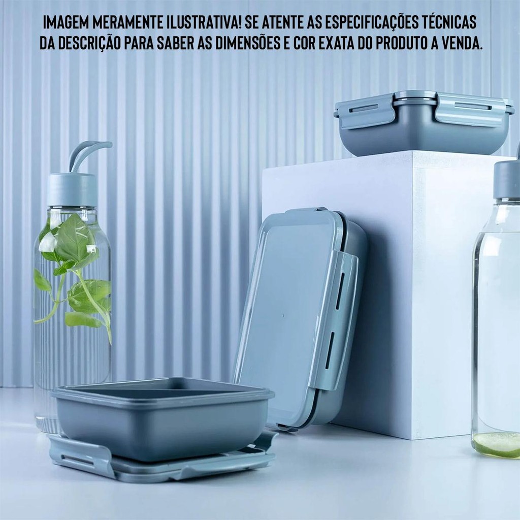 Marmita Hermética Micro-ondas OU Quadrada Marmitou Azul