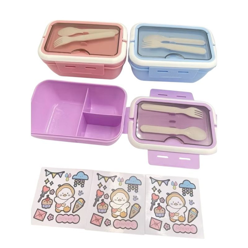 Marmita Lancheira Talher Pote Microondas Freezer Trabalho Escolar Com Cartela de Adesivos-7730