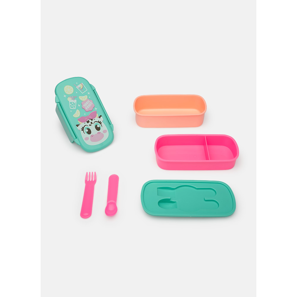 Marmita média em formato retangular de borda arredondada com dois andares, tampa de encaixe com estampa de Vaca. Acompanha 1 garfo e 1 colher de plástico. Tamanho: Média Medidas: 9cm x 17cm X 7,5cm (AxLxP) Capacidade: 850 ml Número de peças: 1 marmita / 1 garfo / 1 colher Cor: Verde Água Indicado para: Alimentos Ocasião: Trabalho / Escola Material: Polipropileno Bpa free: Sim Instrução de uso: Mantenha sempre bem ajustados os componentes (tampa e marmita) do seu produto; antes de usar a marmita, verifique se os componentes da mesma estão firmes e fechados; não expor a chamas vivas ou altas temperaturas; evitar deixar o produto cair; levar ao micro-ondas sem a tampa; pode ser levado ao freezer. Instrução de lavagem: Antes de usar, lavar à mão com detergente neutro e água morna; não utilizar objetos abrasivos como esponjas de aço e similares; não levar à lava louças. Garantia: Deverá ser encaminhado dentro da embalagem original; sem indicações de uso; acompanhado de nota fiscal e com todos os itens constante na solicitação da compra. 100%Polipropileno
