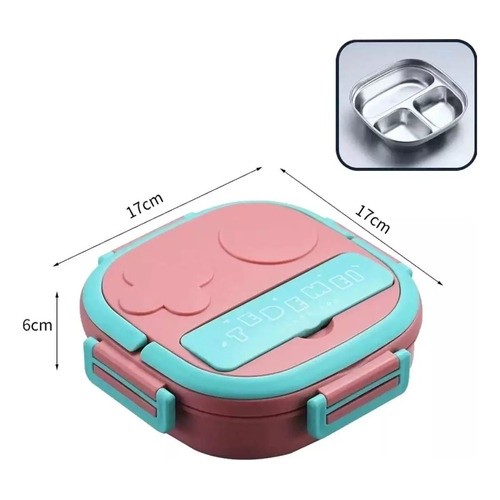 Marmitinha Térmica Infantil com 2 divisórias Descrição: Design de fivela de quatro lados, construído em silicone, fácil de abrir, forro de aço inoxidável: o forro de aço inoxidável pode ser retirado separadamente, tornando a limpeza diária fácil e conveniente. Saúde: a camada externa é feita de material pp de qualidade alimentar, por isso é seguro de usar. Especificação: Material: Plástico, Aço Inoxidável Capacidade: 550ml Medidas: Comprimento: 17cm Largura: 17cm Altura: 6,5cm