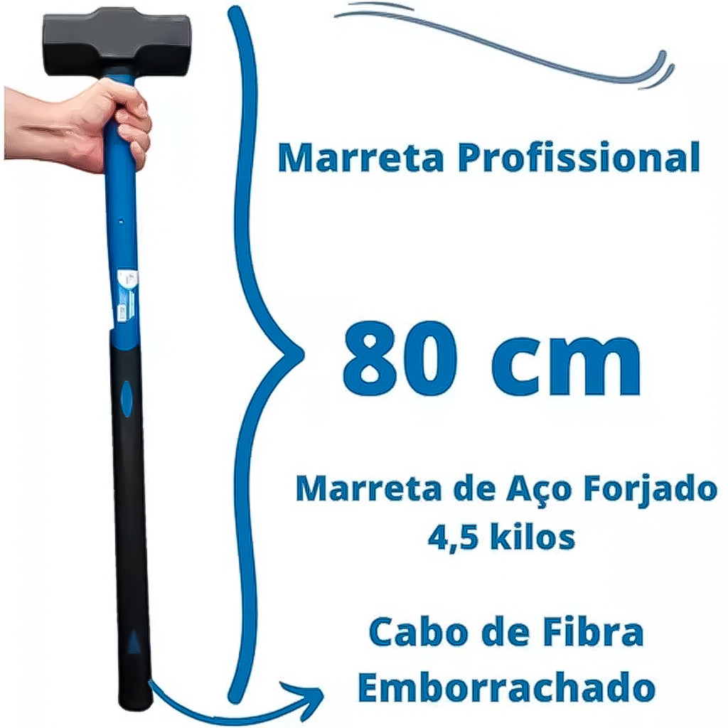 Marreta Aço Forjado Com Cabo Fibra Emborrachado Resistente Pesado Demolição Várias Medidas - GUEPAR