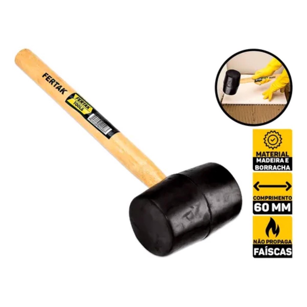 Marreta De Borracha 60mm Pedreiro Obra Piso e Azulejo Fertak Martelo Tijolo Porcelanato Basalto Gesso Madeira