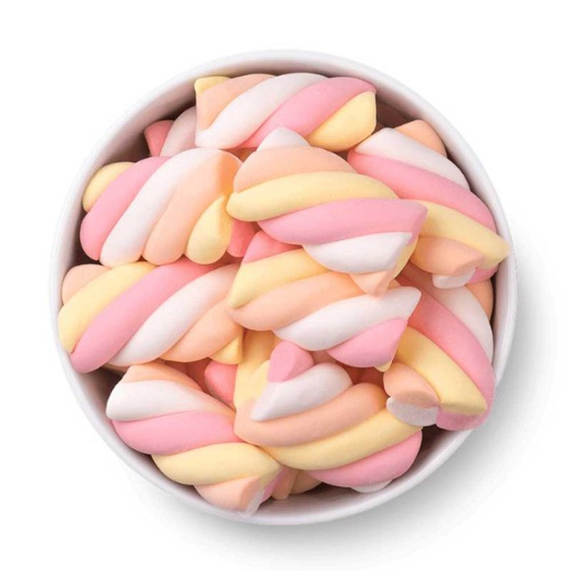 Descrição do produtoMarshmallow twist colorido sabor morango. Perfeito para decorações de mesas de festa, deixando qualquer decoração única e especial!Pode ser consumido tanto puro, como tostado ou assado, acompanhando bebidas quentes e fondues. Pacote de 250g contendo aproximadamente 50 unidades.Ingredientes: Xarope de glicose, açúcar, água, dextrose, gelificante gelatina, aromatizante, regulador de acidez tetrapirofosfato de sódio, amido de milho, corantes artificiais tartrazina, amarelo crepúsculo, azul brilhante FCF, vermelho 40 e azul indigotina. Não contém glúten.Informações NutrionaisPorção de 20g (4 unidadesValor Calórico 61Kcal (3%)Carboidratos 15g (5%)Proteínas 1,0g (1%)Sódio 9,0mg (0%)