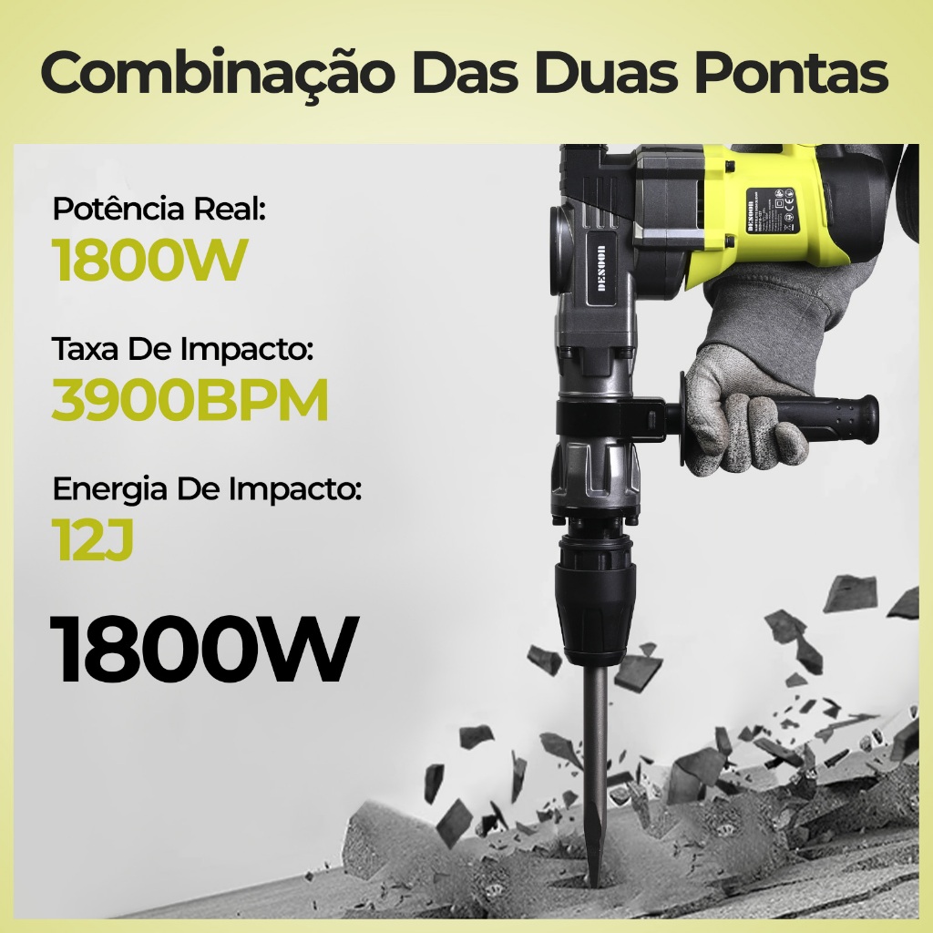 Martelete Demolidor Rompedor 1800w Real SDS Max 12J Profissional Com Acompanha Kit De Pontas Desoon