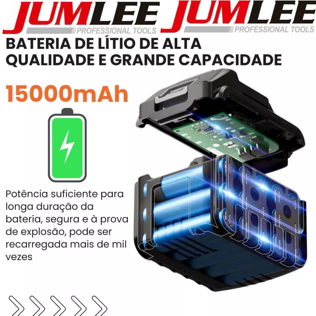Características: Martelo Rotativo Potente: Equipado com um motor sem escovas, nossa furadeira elimina a produção de faíscas e o desgaste do motor, tornando-a ideal para tarefas intensivas. O motor não só proporciona maior durabilidade, mas também aumenta a produtividade, reduz o calor gerado e garante uma operação contínua e eficiente. Design Ergonômico: Com uma alça auxiliar antiderrapante e rotativa de 360°, a furadeira oferece excelente aderência e flexibilidade para trabalhar em qualquer ângulo. O mandril de alta resistência mantém a broca firmemente no lugar, enquanto a placa de circuito selada é resistente a poeira, água e impactos. **Versatilidade em 4 Funções:** O equipamento possui um botão que permite selecionar entre quatro funções: perfuração, perfuração com martelo, ajuste da posição do cinzel e cinzelamento. Se a broca ficar entupida, é fácil desengatar ajustando os interruptores de frente e reverso. **Especificações Técnicas:** - **Nome do Produto:** Martelo Elétrico Tridimensional Sem Escovas de Alta Potência - Energia do Martelo: 3J - Frequência de Impacto: 0-4500/min - Diâmetro de Perfuração: Cobre: 13mm/ Madeira: 28mm/ Concreto: 24mm - Modo de Velocidade: Variável continuamente - Brocas Compatíveis: Haste redonda, dois poços e dois sulcos - Potência Máxima: 1200W - Peso Líquido: 3056g - Dimensões da Máquina: 31cm x 20cm x 8cm - Dimensões com Caixa Plástica: 42cm x 13cm x 34cm - Peso do Conjunto de Brocas (8 peças): 873g - Tensão: 48V - Velocidade Sem Carga: 2000 r/min - Frequência: 4500W - Potência Nominal: 950W ITENS INCLUSOS: 1-Furadeira Martelete JUMLEE 48V 2-Baterias de 48V 6.0Ah 1-Carregador 1-Maleta resistente 4-Brocas de perfuração + 2 talhadeiras 1-Par de luvas 1-Manual de instruções