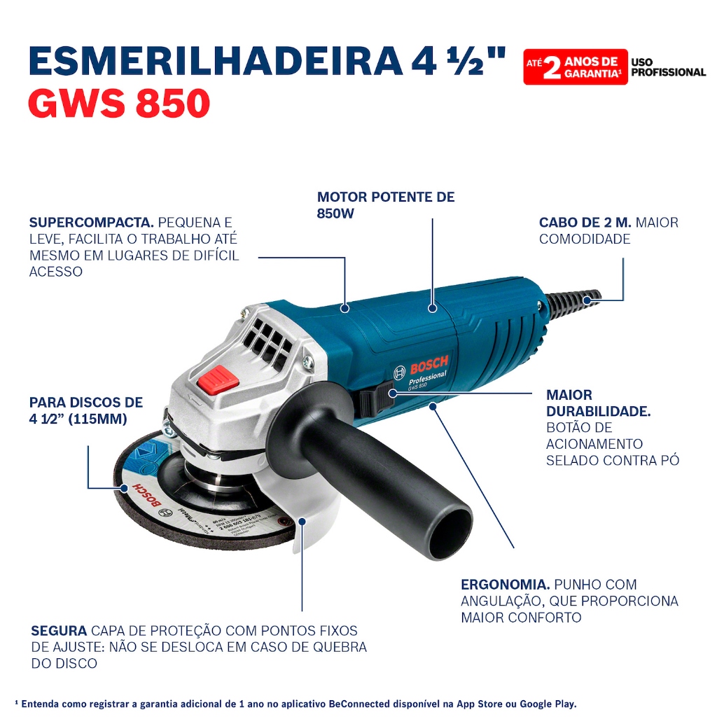 Martelete GBH 2-24 D + Esmerilhadeira GWS 850 Bosch Combo