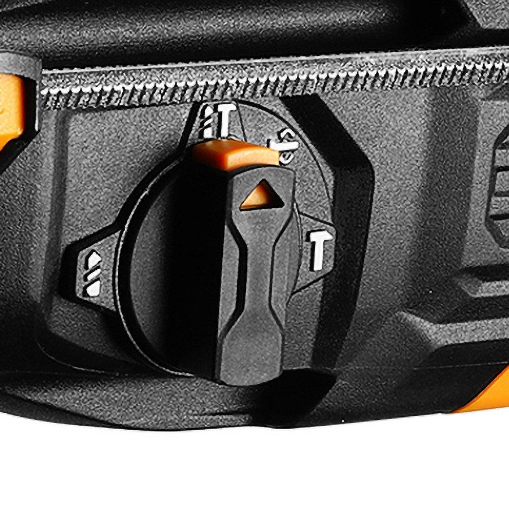 Loja do Mecânico - O que você precisa, nós temos! Martelete, possui 3.2j de força de impacto aliado a 3 funções distintas de trabalho, podendo ser usado de diferentes formas de trabalho, como função Furadeira, Furadeira de Impacto e Rompedor. Mandril SDS, facilitando a instalação dos acessórios a serem usados e equipado com o botão de trava de acionamento para uso prolongado e botão seletor de rotação, para configuração da ferramenta de acordo com o trabalho a ser realizado. - Especificações Técnicas: :: Tensão: 220V :: Frequência: 50/60Hz :: Potência: 850W :: Rotação: 0-1300rpm :: Impacto por Minuto: 0-5500bpm :: Força de Impacto: 3.2j :: Mandril: SDS Plus :: Capacidade Máxima de Perfuração: - Concreto: 1-3/32" - 28mm - Aço: 1/2" - 13mm - Madeira:1-3/16 - 30mm :: Classe de Proteção: Isolamento Duplo :: Peso: 5.5Kg :: Dimensões: 11 x 28 x 44cm - Conteúdo da Embalagem: :: 1 Martelete Rotativo :: 1 Empunhadura Auxiliar Regulável :: 1 Régua limitadora de Profundidade :: 1 Maleta de Acondicionamento - Garantia: 1 Ano - 7908591702897