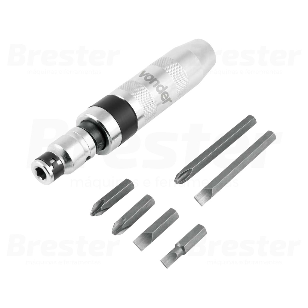 Olá, Bem vindo a Distribuidora Brester. Trabalhamos com uma grande variedade de ferramentas elétricas e manuais, descartáveis, eletroeletrônicos, artigos para casa, artigos de petshop e outros. Aqui você encontrará Produtos Originais, Nota Fiscal, Pronta Entrega e Envio Imediato! * Características do produto * Martelete Perfurador Rompedor Pneumático Vonder + 6 Pontas Pesquise o que há de melhor no mercado de ferramentas manuais, e você vai encontrar o Martelete de Impacto Manual da marca Vonder. A Vonder é conhecida pela qualidade de seus produtos e não poderia ser diferente com o Martelete de Impacto Manual. Possui sistema de reversão (direita e esquerda), permitindo soltar parafusos rosca direita ou esquerda. Além disso, os bits são feitos em aço cromo vanádio, que proporciona maior resistência e durabilidade. Não deixe de levar para a sua oficina o melhor martelete de impacto manual, que é prático, eficiente e seguro. O Martelete de Impacto Manual da marca Vonder é resistente e leva qualidade e segurança para o seu trabalho. Fabricado em aço cromo vanádio, tem maior resistência e durabilidade. Seja mais rápido, prático e eficiente com o Martelete de Impacto Manual da marca Vonder. Com ele, você consegue soltar e apertar parafusos rosca direita ou esquerda, com total segurança e precisão. Além disso, os bits são fabricados em aço cromo vanádio, que garante maior resistência e durabilidade. Especificações Técnicas: > Material: Aço cromo vanádio; > Tipo de encaixe do martelete: Sextavado - 8 mm - 5/16"; > Sistema de reversão: Sim; > Comprimento corpo do martelete: 165 mm; > Diâmetro do corpo do martelete: 31 mm; > Massa aproximada (peso): 1,056 kg; - Marca: Vonder - Garantia: 90 dias contra defeitos de fabricação Vantagens de comprar na Brester: - Nota fiscal para Pessoa Física e Pessoa Jurídica. - Produto novo, com garantia de fábrica. - Produto a pronta entrega. - Envio em até 24hs em dias úteis após confirmação do pagamento. Obrigado por escolher a Brester Máquinas.