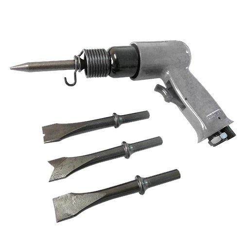 Martelete pneumático 190mm DADOS TÉCNICOS Peso: 1,44kg Batida: 66MM Entrada de ar: 1/4" Haste cinzel: 10.2MM Comprimento: 175MM Explosão por minuto:3.500 Diâmetro do furo: 19.05MM Consumo de ar: 4.8CFM à 90 PSI