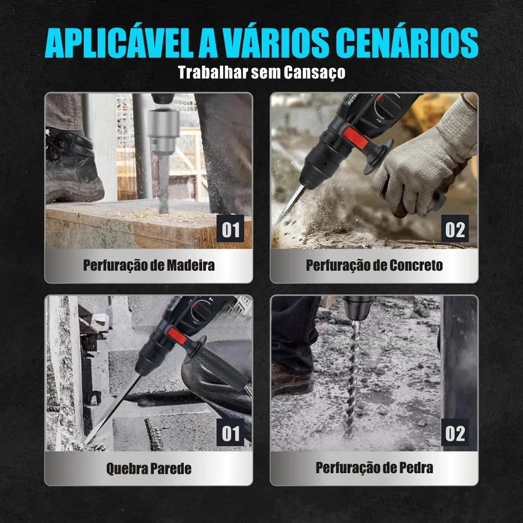 Martelete Rompedor Perfurador de Impacto Profissional 1300W SDS Plus Potência Mandril 26mm Hanabi 110V/220V
