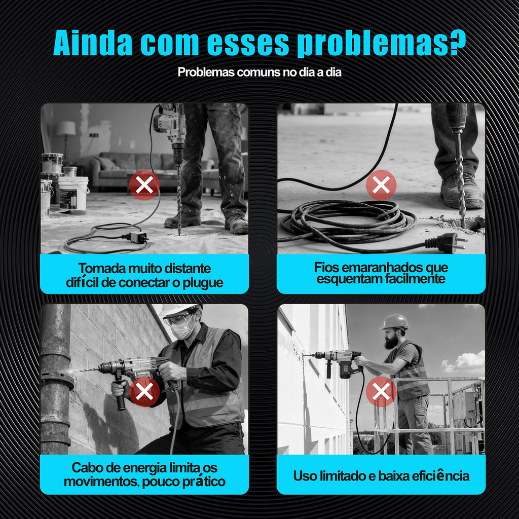 O Martelete Rotativo e Rompedor Hanabi 21V é a ferramenta ideal para quem precisa de potência, mobilidade e versatilidade em obras e reformas. Com 3 funções em 1, motor de alto desempenho e funcionamento sem fio, ele perfura, martela e rompe com eficiência total em concreto, alvenaria, madeira e metal. CARACTERISTICAS DO PRODUTO Sistema 3 em 1 perfuração marteamento e rompimento Motor potente 21V com desempenho até 40 por cento superior Mandril SDS Plus em aço reforçado com fixação segura Cilindro de grande diâmetro para impacto mais forte Velocidade variável contínua para controle total Empunhadura auxiliar giratória 360 graus com absorção de vibração Sistema de ventilação com múltiplas entradas de ar Design sem fio com total liberdade de movimento Reversão de rotação para maior versatilidade ESPECIFICACOES DO PRODUTO Marca: Hanabi Modelo: LJ-2009 Tensão nominal: 21V Bateria Íon de Lítio: 4.0Ah Quantidade de baterias: 2 unidades Mandril SDS Plus: até 26 mm Velocidade sem carga: 0 a 800 rpm e 0 a 1300 rpm Capacidade em concreto: até 26 mm Capacidade em metal: até 13 mm Capacidade em madeira: até 30 mm Reversão: Sim Alimentação Bateria: recarregável Carregador: Bivolt 110V/220V IDEAL PARA Perfuração e rompimento em concreto e alvenaria pesada Instalações elétricas e hidráulicas Obras e reformas residenciais e profissionais Trabalhos em locais sem acesso à energia elétrica Uso profissional contínuo CONTEUDO DA EMBALAGEM 01 Martelete Rotativo e Rompedor Hanabi LJ 2009 21V 02 Baterias Íon de Lítio 21V 4.0Ah 01 Carregador rápido bivolt 01 Broca SDS 8 mm 01 Broca SDS 10 mm 01 Empunhadura auxiliar giratória 360 graus 01 Guia de medição de profundidade 01 Maleta reforçada para transporte 01 Manual do usuário CARACTERISTICAS TÉCNICA 1. TROCA INSTANTÂNEA TRI-FUNÇÃO: Perfuração / Perfuração com impacto / Rompimento — seleção rápida pelo interruptor rotativo. 2. MANDRIL DE AÇO REFORÇADO ANTIDESLIZAMENTO: Fixação firme das brocas com sistema SDS-Plus, sem quedas e sem folgas. 3. MOTOR PODEROSO 21V: Saída dinâmica e estável — 40% mais desempenho, 80% mais potência e 200% mais eficiência. 4. ALÇA AUXILIAR AMORTECEDORA 360°: Design giratório com absorção de vibração, reduzindo esforço e aumentando a precisão. 5. VELOCIDADE VARIÁVEL CONTÍNUA: Ajuste suave no gatilho para controle total da perfuração, ideal para diferentes materiais. 6. CILINDRO DE GRANDE DIÂMETRO: Transmissão ampliada com impacto explosivo — ideal para concreto e alvenaria pesada. 7. GRANDE SAÍDA DE VENTILAÇÃO: Sistema de resfriamento rápido que prolonga a vida útil do motor. 8. DESIGN SEM FIO – MOBILIDADE TOTAL: Elimine limitações de cabos, evite sobreaquecimento e obtenha movimentos livres durante o trabalho. 9. INTERRUPTOR MULTIFUNCIONAL DE ROTAÇÃO: Permite alternar facilmente entre perfurar, martelar ou romper. 10. CARCAÇA REFORÇADA E PEGADA ERGONÔMICA: Material resistente, durável e confortável para longas horas de uso. A HANABI empresa que atua há mais de 6 anos nas vendas online, temos como premissa oferecer a melhor experiência de compra para nossos clientes, trazendo produtos de alta qualidade e melhor custo-benefício. Agradecemos pela preferência! Garantia do vendedor: 90 dias