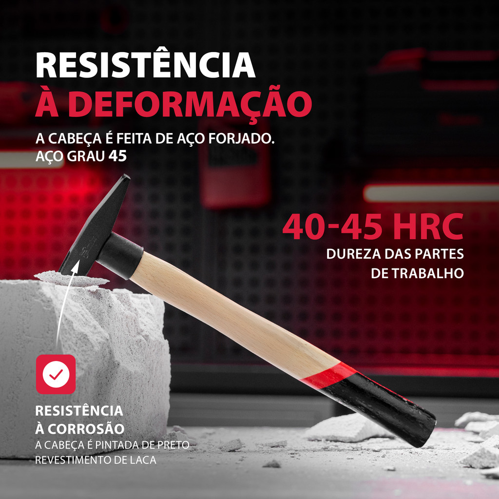 Martelo Pena MTX 102269: Precisão e Durabilidade para Seus Projetos. O Martelo Pena MTX 102269 é a ferramenta essencial para quem busca precisão e durabilidade em trabalhos com metal. Com uma cabeça quadrada pesando 100 g e um cabo de madeira, este martelo é ideal para dar golpes precisos, martelar pregos e buchas, e trabalhar em áreas de difícil acesso graças à sua ponta afiada. Seja para uso profissional ou em casa, na casa de campo ou na garagem, este martelo é uma adição valiosa ao seu conjunto de ferramentas. Vantagens Resistência à Deformação: A cabeça é feita de aço forjado da marca 45, garantindo robustez e durabilidade. Resistência ao Desgaste: As partes de trabalho da cabeça são temperadas com uma dureza de 40-45 HRC, proporcionando longa vida útil. Resistência à Corrosão: A cabeça é revestida com tinta preta para proteção contra corrosão. Construção Confiável: O cabo é cunhado e a cabeça é fixada com cola epóxi. A ""saia"" aumentada na área de encaixe protege o cabo contra erros ao bater. Durabilidade: O revestimento transparente protege o cabo de madeira bicolor de rachaduras, assegurando uma vida útil prolongada. Características Principais. O Martelo Pena MTX 102269 combina precisão e durabilidade, tornando-se a escolha ideal para profissionais e entusiastas do faça-você-mesmo. Experimente a diferença que a qualidade MTX pode trazer para seus projetos e veja como este martelo pode facilitar suas tarefas diárias com eficiência e confiança.