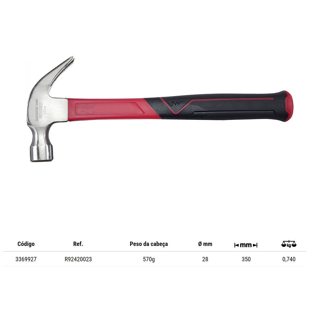 Martelo Unha Cabo de Fibra 28mm 570g Gedore Red R92420023