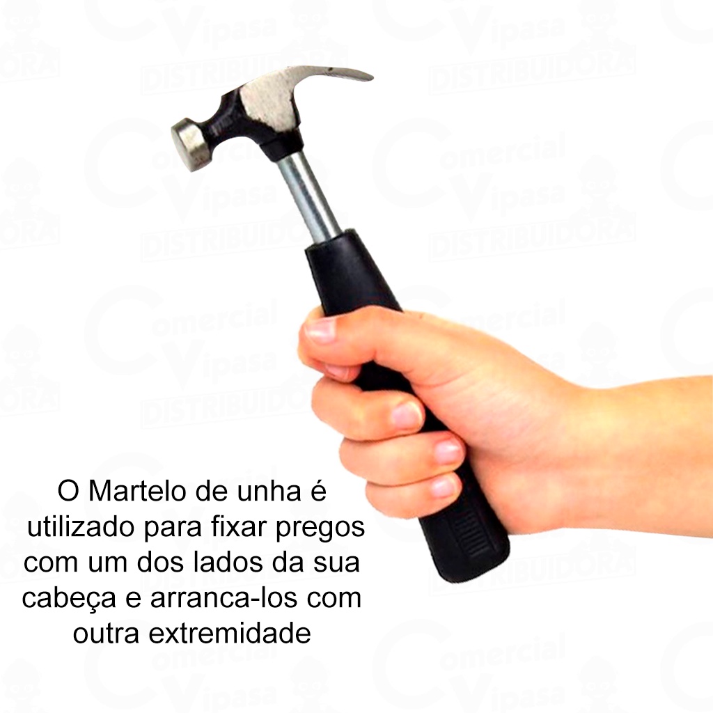 COMERCIAL VIPASA DISTRIBUIDORA. Martelo Unha Cabo Metal Emborrachado Hobby Profissional Vários Tamanhos A Escolha Multiuso ANÚNCIO DE VARIAÇÃO DE TAMANHOS DOS MARTELOS UNHAESCOLHA COM ATENÇÃO NA VARIAÇÃO DO ANÚNCIO.Martelo Unha Cabo Mental Emborrachado Hobby Profissional Mini PregarDESCRIÇÃO:O Martelo de unha é utilizado para fixar pregos com um dos lados da sua cabeça e arranca-los com a outra extremidade.Marca: EDACaracterísticas:Composição: Ferro fundido, borracha-Cabo emborrachado.-Cabeça em aço.-Possui a função unha para arrancar pregos.Conteúdo:-1 Martelo Unha ( TAMANHO A ESCOLHER NO ANÚNCIO )Aplicação: Ideal para martelar e arrancar pregos.Descrição:O Martelo Unha com Cabo Metal Emborrachado de é uma ferramenta indispensável para trabalhos de construção, reparo e carpintaria. Projetado para proporcionar eficiência e conforto durante o uso, este martelo combina durabilidade e praticidade.Características:Cabeça de Aço Temperado: A cabeça do martelo é feita de aço temperado de alta qualidade, garantindo resistência e durabilidade mesmo sob uso intenso.Tamanho da Cabeça:, é ideal para diversas aplicações, desde pequenos reparos até tarefas mais pesadas.Cabo Metálico Emborrachado: O cabo de metal oferece robustez e longevidade, enquanto o revestimento emborrachado proporciona uma pegada confortável e segura, reduzindo a fadiga e o risco de escorregamento durante o uso.Unha de Extração: Equipado com uma unha na parte de trás da cabeça, este martelo é perfeito para a remoção de pregos e para uso em trabalhos de demolição leve.Equilíbrio Perfeito: O design ergonômico garante um equilíbrio ideal, permitindo controle e precisão nas batidas.Uso Ideal:Construção e Carpintaria: Perfeito para fixação de pregos, montagem de estruturas e remoção de pregos.Reparos Domésticos: Ideal para pequenas reformas e consertos em casa.Projetos DIY: Excelente para projetos "faça você mesmo" que requerem precisão e força.Benefícios:O Martelo Unha Cabo Metal Emborrachado oferece uma combinação de força, durabilidade e conforto. Sua cabeça de aço temperado garante a resistência necessária para diversas tarefas, enquanto o cabo emborrachado proporciona uma pegada segura e confortável, minimizando o cansaço durante o uso prolongado. Além disso, a presença da unha para remoção de pregos torna esta ferramenta versátil e essencial em qualquer caixa de ferramentas.Recomendações de Segurança:Utilize equipamentos de proteção individual (EPI) como óculos de segurança e luvas durante o uso.Mantenha fora do alcance de crianças.Inspecione a ferramenta regularmente para garantir que não há danos ou desgaste excessivo.Com o Martelo Unha Cabo Metal Emborrachado , você estará equipado para enfrentar uma ampla gama de tarefas com eficiência e segurança.COMERCIAL VIPASA DISTRIBUIDORA