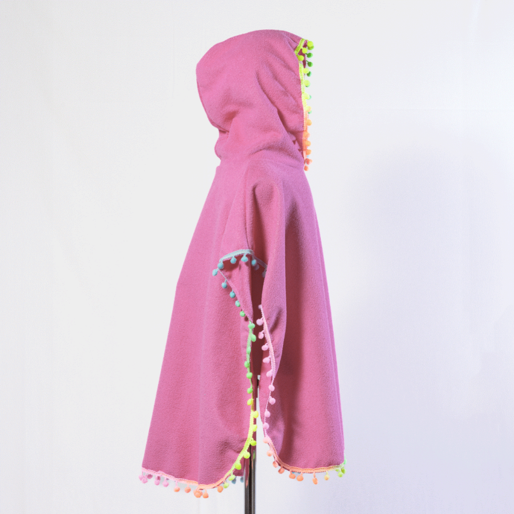 Esta toalha é perfeita para secar e proteger sua criança após o banho e também pode ser usada como traje de banho na praia, na piscina. Em formato de poncho, a toalha garante liberdade de movimento pois os braços da criança ficam livres. O capuz desta toalha permite que a cabeça da criança fique seca e protegida, caso você esteja na praia, ela protege muito bem dos ventos. Com um tamanho de 60 cm x 65 cm (largura x altura) é ideal para crianças de até 3 anos. Feito em microfibra macia de alta absorção esta peça é confortável e versátil. Os pompons coloridos que contornam toda toalha são o grande diferencial, dando muito estilo à peça. Aproveite o sol e a areia com estilo e conforto. Produto exclusivo, fabricação própria.