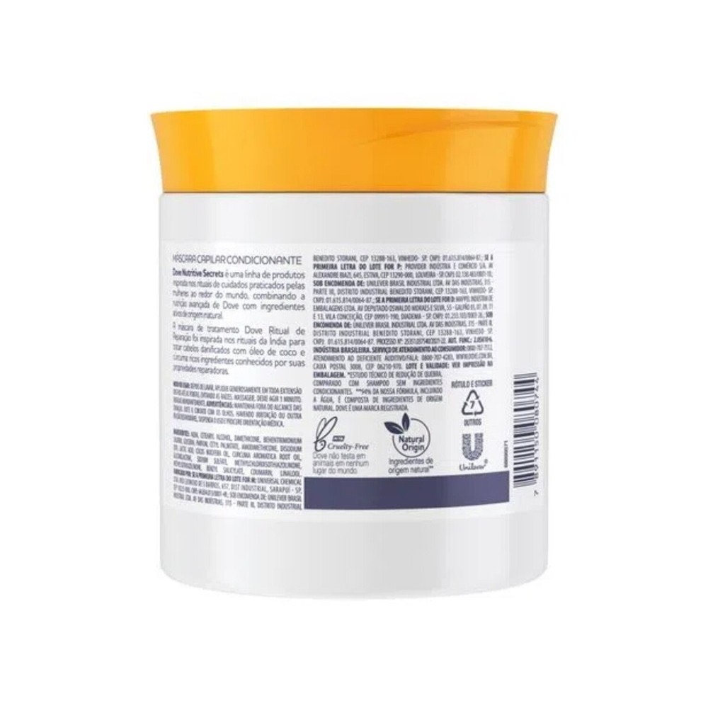 | Mascara 1 Minuto Dove Ritual de Reparacao 500g este produto | R$ 24,25 | 3% | 4.8/5 | 5 |