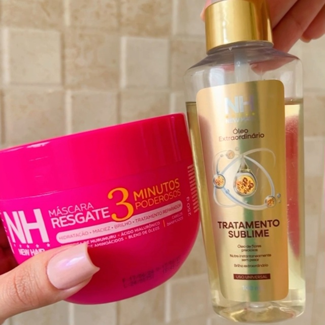 Catalogado na subcategoria Tratamento Capilar (de Beleza), Mascara 3 Minutos New Hair 250g + Óleo Extraordinário New Hair 100ml | Brilho e maciez está à venda na Shopee Brasil por R$ 37,90 (37% de desconto sobre o preço original de R$ 60,16). Nota 4.9 de 5 na Shopee e 63 unidades vendidas, este produto se destaca pelo excelente custo-benefício.