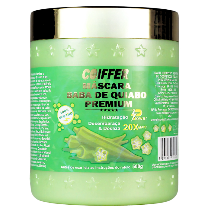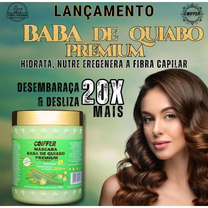 MASCARA BABA DE QUIABO PREMIUM COIFFER 500G (Deslizar e desembaraçar 20x mais, hidratação power)