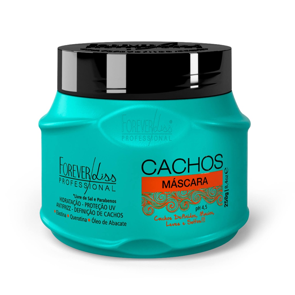 A Máscara Cachos Forever Liss 250g proporciona nutrição e hidratação para cabelos cacheados ou crespos. Enriquecida com Queratina, Elastina e Óleo de Abacate, reduz o volume, controla o frizz, reduz pontas duplas e previne a queda, fortalecendo os fios e deixando-os macios, fáceis de pentear e com cachos muito mais definidos. Agora o cacho perfeito é possível, com efeito prolongado, cabelos luminosos, leves e disciplinados. Seu uso é indicado inclusive durante o processo de transição capilar, já que é compatível com todos os tipos de química. Indicação: Indicado para cabelo crespo, cacheado e em transição. Modo de uso: 01. Aplique a Máscara Cachos Forever Liss 250g nos cabelos úmidos, logo após o uso do Shampoo Cachos Forever Liss, massageando suavemente mecha por mecha ou usando um pente de dentes largos; 02. Deixe agir por 5 minutos e enxágue normalmente; 03. Finalize como desejar. Para um melhor resultado utilize a Linha completa Cachos. Contém: 01 - Máscara Cachos Forever Liss 250g Precauções: Manter em temperatura ambiente, em local seco e ao abrigo de luz. Uso externo adulto. Em caso de contato acidental com os olhos, enxaguar abundantemente. Havendo irritação, suspenda o uso. Caso a irritação persista, procure orientação médica. Não ingerir. Manter fora do alcance de crianças. Principais Dúvidas: 01. Qual é a frequência de uso da Máscara Cachos Forever Liss? R. Esta máscara pode ser utilizada diariamente. 02. A Máscara Cachos Forever Liss pode ser utilizada por gestantes e lactantes? R. Não há contraindicações, porém em caso de dúvidas o médico deverá ser consultado.