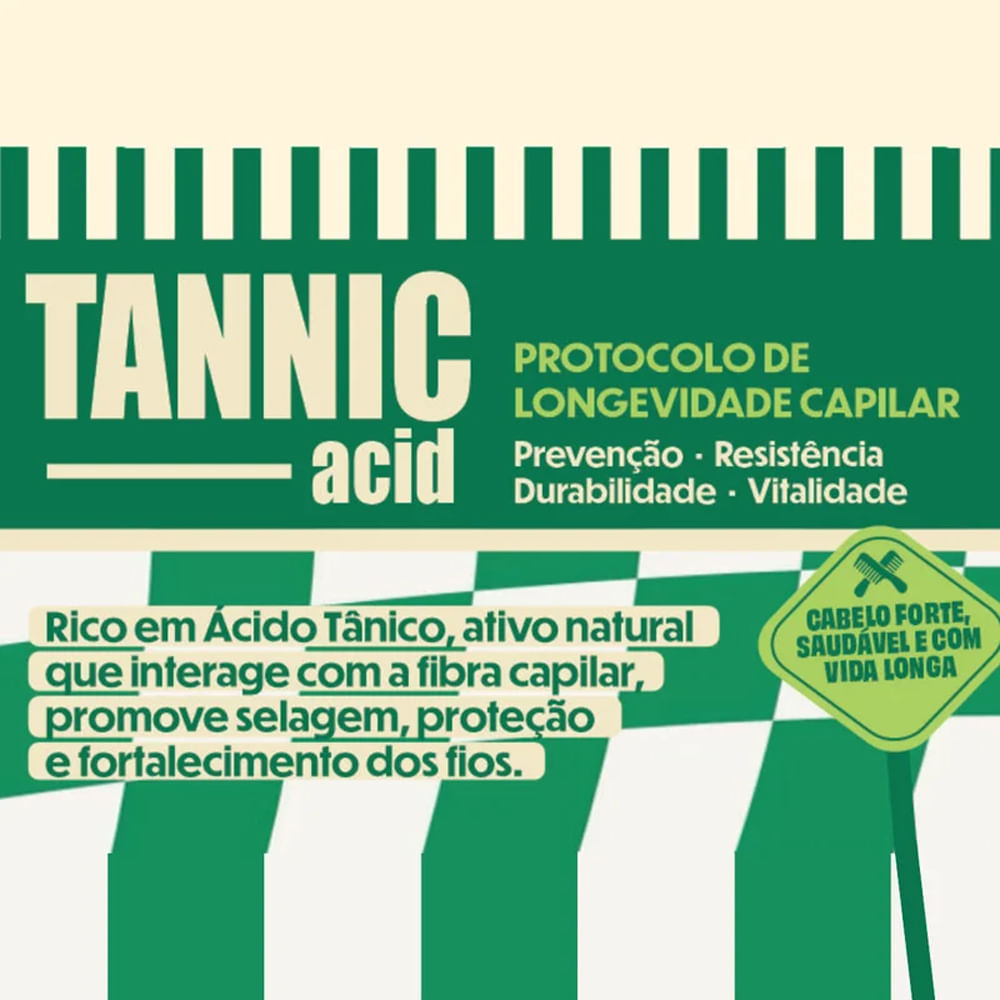A Máscara Capilar Lola Tannic Acid 450g é um tratamento restaurador e disciplinante que promove reconstrução profunda e alinhamento natural dos fios. Formulada com ácido tânico, um ativo vegetal de alta performance, ela fortalece a fibra capilar, controla o frizz e proporciona brilho intenso, sem alisar quimicamente. Ideal para cabelos danificados, volumosos ou com frizz, devolve maciez, força e vitalidade desde a primeira aplicação. Com tecnologia antioxidante e reparadora, a máscara atua na reconstrução da estrutura interna do fio, deixando o cabelo mais resistente, hidratado e com aparência saudável. Benefícios:Reconstrói e fortalece a fibra capilar;Controla o frizz e o volume excessivo;Promove brilho intenso e toque sedoso;Protege contra danos e oxidação;Alinhamento natural sem química.Modo de usar: Após lavar os cabelos, aplique a máscara nos fios úmidos, do comprimento às pontas. Deixe agir de 5 a 10 minutos e enxágue bem. Use de 1 a 2 vezes por semana ou conforme a necessidade do cabelo. Sobre a marca: A Lola Cosmectis surgiu a partir de uma escolha: ser feliz! Levar a vida com bom humor, ainda que nada pareça dar certo. Nem mesmo o seu cabelo! A paixão da Lola são seus cabelos e o objetivo é oferecer linhas de tratamento capilar ideais para cada tipo de cabelo. Com seus produtos para cabelos especiais, a missão da Lola e dos seus cosméticos é uma só: permitir que você use sua cabeleira sem culpa, como deseja, com bom humor e ousadia.
