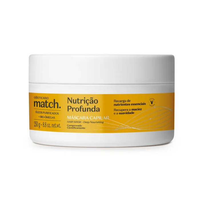 Máscara Capilar Nutrição Profunda 250g Match O Boticário.