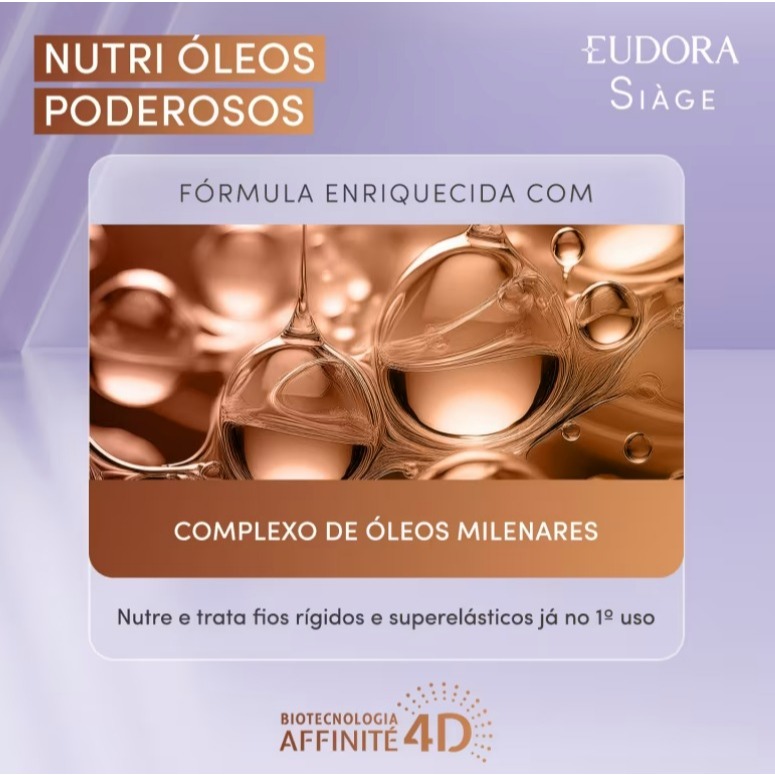 | Máscara Capilar Siàge Nutri Óleos Poderosos 250g Eudora este produto | R$ 61,60 | 12% | 5.0/5 | 40 |
