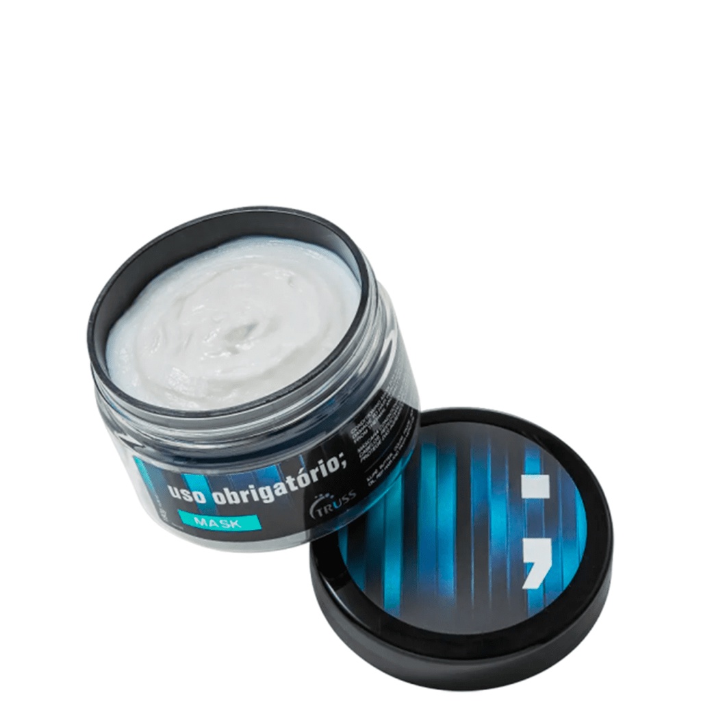 Máscara Capilar Uso Obrigatório 180g - Truss Sobre o produto: Tratamento reconstrutor que chegou para complementar seu ritual de beleza junto ao queridinho Uso Obrigatório;. Possui alta concentração de ativos, que auxiliam na reposição lipídica da fibra capilar, conferindo brilho, hidratação, força aos fios e selamento das cutículas. Hidrata, reconstrói e reduz os danos em cabelos com química. Promove suavidade aos fios e ação antidesbotamento, além de reduz danos em cabelos com química e protege das agressões diárias e térmicas. Claims: reconstrução, hidratação, reposição lipídica, antidesbotamento, antipoluição. Indicado para todos os tipos de cabelo. Ativos Principais: Color Fixate: Tecnologia inovadora e de alto desempenho que proporciona retenção da cor e ação antidesbotamento em cabelos coloridos. O polímero forma uma superfície hidrofóbica por toda a fibra capilar, reduzindo a absorção de água durante a lavagem e assim, diminuindo a perda de coloração durante o processo! Melhora a vivacidade e brilho dos fios tingidos e garante condicionamento e reparo de longa duração. Illipe Butter: Ativo derivado de um fruto exótico originário das Ilhas do Pacífico. Rica em ácidos graxos que contribuem para preservar a estrutura das ceramidas (lipídios) que mantêm a hidratação dos cabelos. Restaura a elasticidade dos fios. Jojoba Oil: Ativo vegetal e natural, rico com lipídeos que agem reforçando a hidrofobicidade do cabelo e recriando a camada lipídica protetora dos fios. Melhora a suavidade do cabelo, melhora e penteabilidade e possui ação antipoluição. Rep Hair: Molécula “ceramida-like” obtida a partir de ácidos graxos de origem vegetal que age reestruturando a fibra capilar. Reestabelece a composição lipídica dos fios, suavizando as cutículas e, consequentemente, protegendo o córtex. Além disso, proporciona o aumento do brilho e resistência do cabelo. Soft Touch: Ativo vegetal que atua como repositor da camada lipídica capilar, que é perdida durante processos químicos e pelo uso constante de fontes de calor. O Soft Touch possui tecnologia avançada capaz de formar um biofilme na superfície capilar, alinhando as cutículas, sem acumular nos fios e evitando o “build-up”. Rico em ômega 6 e 9, vitaminas A, C e E, proporciona condicionamento, melhorando a penteabilidade, reduzindo o frizz e conferindo suavidade e brilho aos fios. Tahiti Monoi Oil: Óleo vegetal 100% natural, proveniente da Polinésia Francesa. Rico em Ômegas Essenciais e Vitamina E. Possui ação antioxidante, restaura e hidrata profundamente os fios. Modo de usar: Após o uso do shampoo, retire o excesso de água dos fios e distribua a máscara no comprimento e pontas. Massageie, desembarace, deixe agir por 5 minutos e enxágue. Para melhores resultados e fios saudáveis, adicione a máscara na sua rotina de cronograma capilar, seu uso é indicado de 1 a 3 vezes por semana. Composição: Aqua, Cetearyl Alcohol, Propylene Glycol, Cetyl Alcohol, Isopropyl Myristate, Stearamidopropyl Dimethylamine, Jojoba Esters, Cetrimonium Chloride, Parfum, Stearyl Alcohol, Helianthus Annuus Seed Wax, Bis-Cetearyl Amodimethicone, Dicetyldimonium Chloride, Alcohol, Lactic Acid, Phenoxyethanol, Amodimethicone, Behenyl/Stearyl Aminopropanediol Esters, Shorea Stenoptera Seed Butter, Ceteareth-20, Dipalmitoylethyl Hydroxyethylmonium Methosulfate, Behenamidopropyl Dimethylamine, C11-15 Pareth-7, Glycerin,Ethyl Linoleate, Laureth-9, Trideceth-12, Ethyl Oleate, Disodium EDTA, Polyquaternium-113, Polyglycerin-3, Ceteareth-25, Ceteareth-7, Cocos Nucifera Oil, Crambe Abyssinica Seed Oil, Benzyl Alcohol, Helianthus Annuus Seed Oil, Persea Gratissima Oil, Caprylyl Glycol, Gardenia Taitensis Flower Extract, PEG-4, Arginine HCI, Panthenol, Salicylic Acid, Creatine, Glycine, Hydrolyzed Corn Protein, Hydrolyzed Soy Protein, Hydrolyzed Wheat Protein, Proline, Serine, Sorbic Acid, Acetyl Cysteine, Pentaerythrityl Tetra-Di-T-Butyl Hydroxyhydrocinnamate, Sodium Metabisulfite, Tocopherol, Hexyl Cinnamal, Linalool and Limonene.