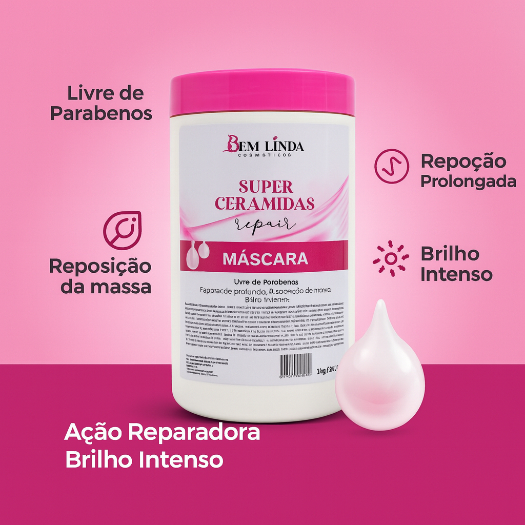 Máscara de Ceramidas 500g e 1kg Hidratação Profunda Reconstrução Capilar Brilho Intenso Profissional