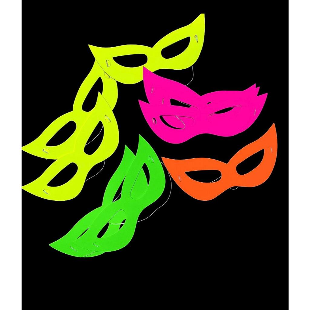 Máscara de festa neon - 4 cores - Kit 10/20/30 - Brilha na luz negra