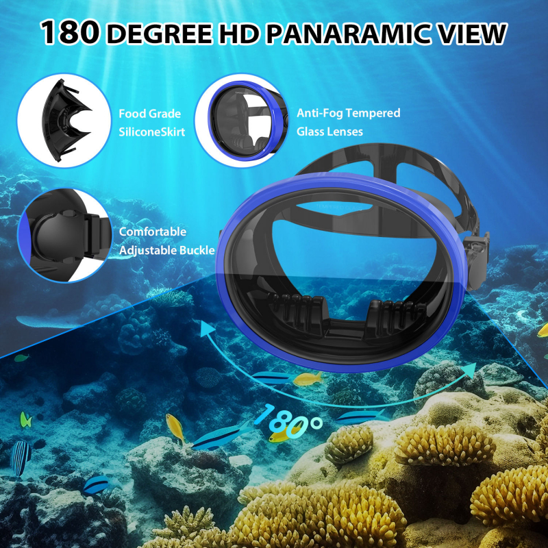 Máscara de mergulho, máscara de pesca submarina, máscara de mergulho livre, vidro temperado HD antiembaçantes para adult