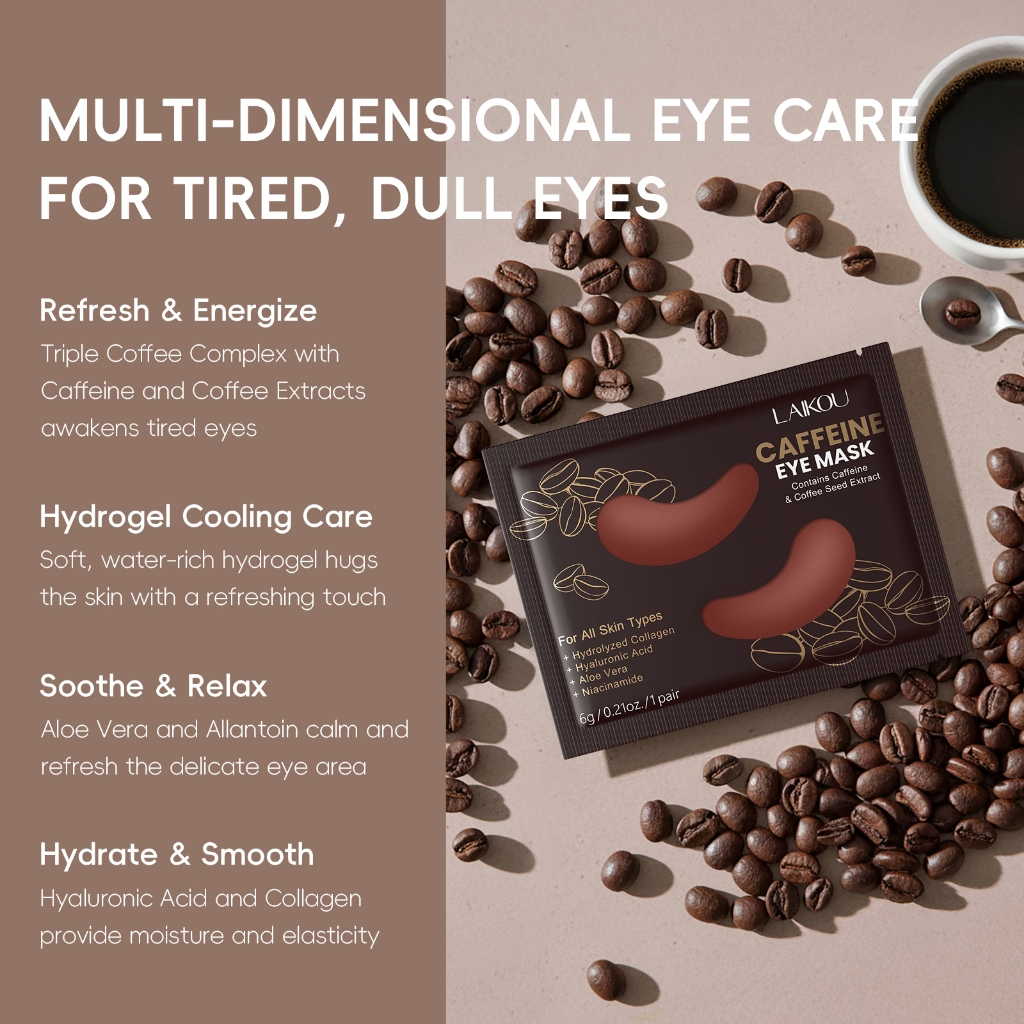 Máscara De Olhos Com Cafeína LAIKOU-Revitalizante E Hidratante Para Áreas Sob Os 6g/Par