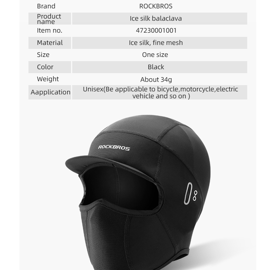 Marca: ROCKBROS Nome do produto: balaclava de seda de gelo Seda de gelo, malha fina Tamanho livre Cor preta:Preto Peso: Cerca de 34 g Aplicação:unisex(ser aplicável à bicicleta, motocicleta, veículo elétrico e assim por diante) Características: 1.Refrescante e respirável, fresco e confortável ao toque. 2.Costura de malha de costura de nariz e boca boa respiração sem neblina. 3.O design do orifício do orifício dos óculos dos óculos dos óculos também é adequado para pessoas miópicas. 4.Pode ser lavado repetidamente, não é fácil de desbotar e pilling.