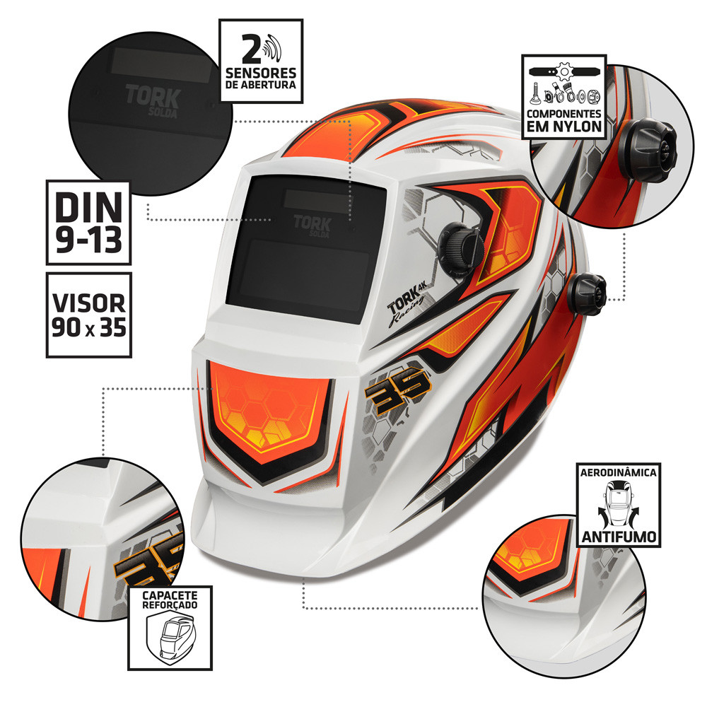Mascara de Solda 4K Escurecimento Automatico Racing 35 Tork