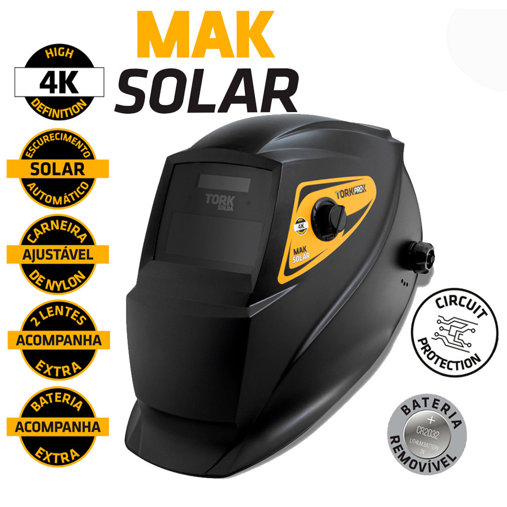 Mascara de Solda Mak Solar 4K DIN 9~13 Função Esmerilhadeira + Esquadro Super Tork