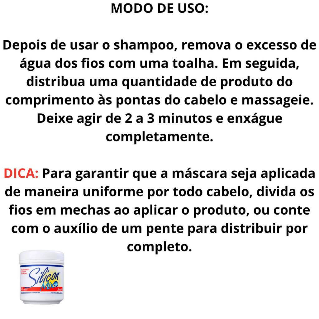 | Máscara de Tratamento Capilar INTENSIVO Silicon Mix Avanti 450g Hid... este produto | R$ 69,91 | 30% | 5.0/5 | — |