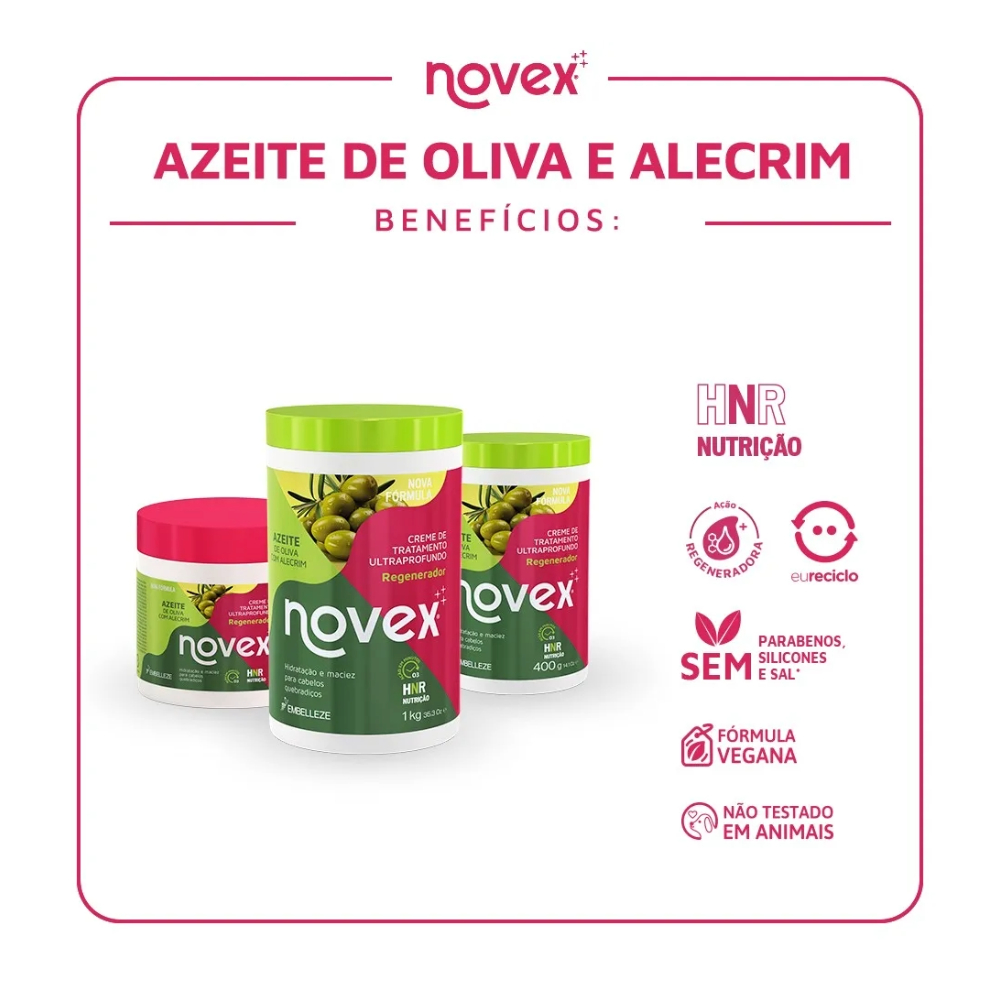 Sua poderosa fórmula com Azeite de Oliva, proporciona hidratação profunda e maciez aos fios, além de ajudar a formar uma camada protetora nos fios deixando os cabelos sempre hidratados, nutridos e protegidos. Com o mais puro Azeite de Oliva e Vitamina E, o Creme de Tratamento Novex é ideal para cabelos fracos, ressecados e quebradiços. Modo de Usar: Com os cabelos limpos e úmidos, aplique o Creme De Tratamento Novex Azeite De Oliva no comprimento e pontas, massageando suavemente em movimentos de cima para baixo. Deixe agir por 15 minutos e enxágue.