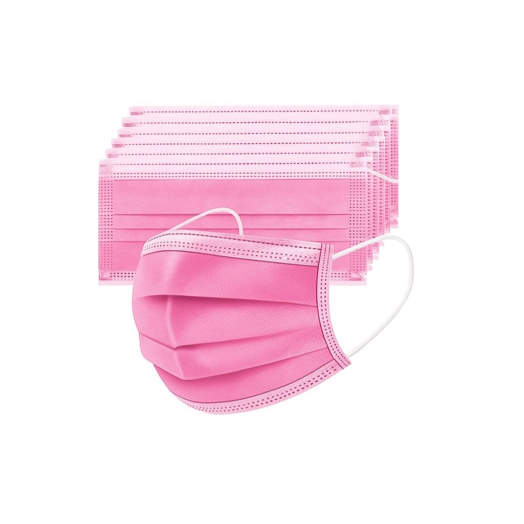 Máscara Descartável 50 Unidades Rosa,Pink Tripla Camada – Clip Nasal e Elástico Confortável